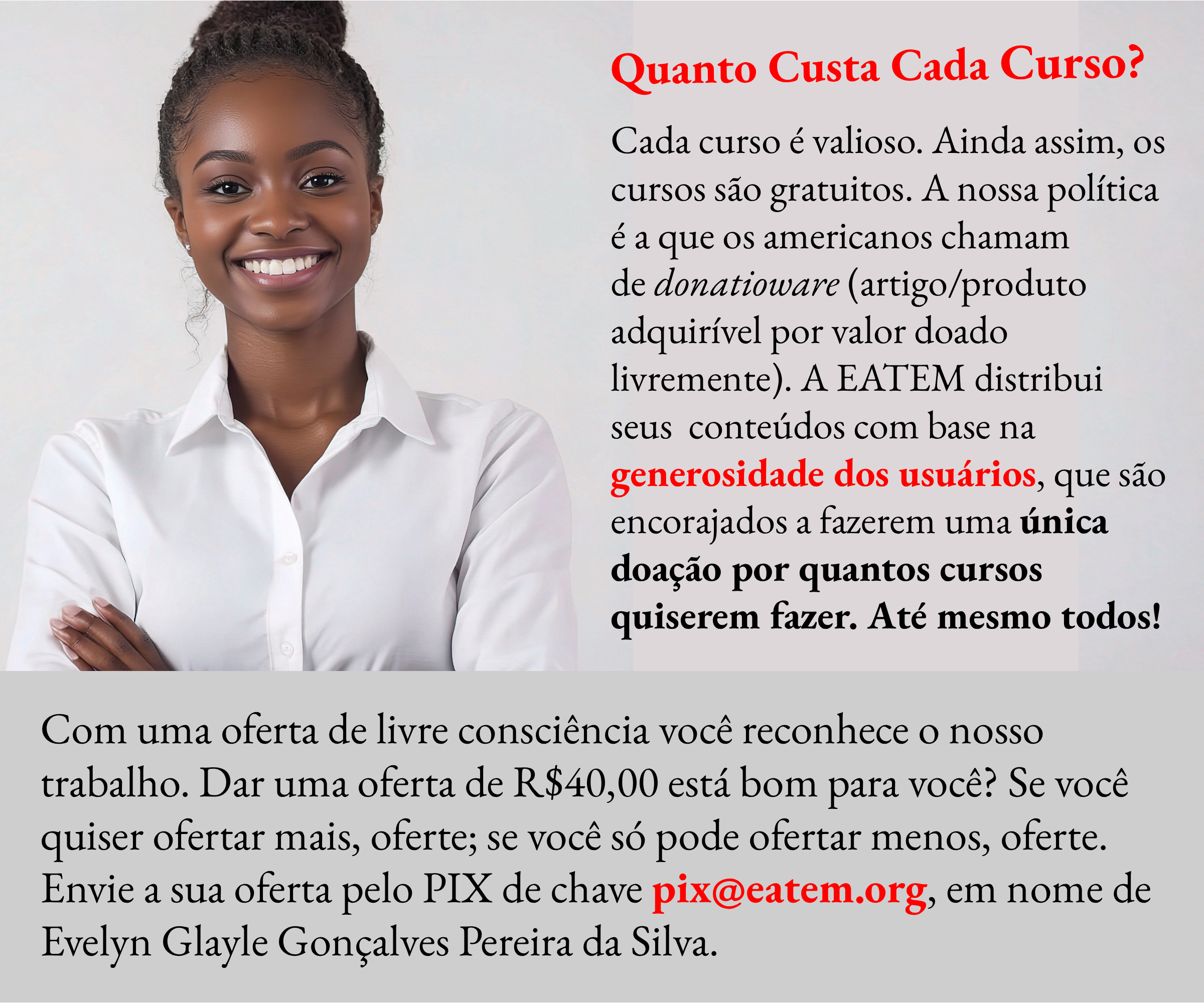 Um curso da maior utilidade. Curto e objetivo, ele traz as estratégias para superar hábitos viciosos e criar bons hábitos que temos dificuldades de criar. Como criar o hábito da leitura, de fazer exercícios físicos, de orar etc.